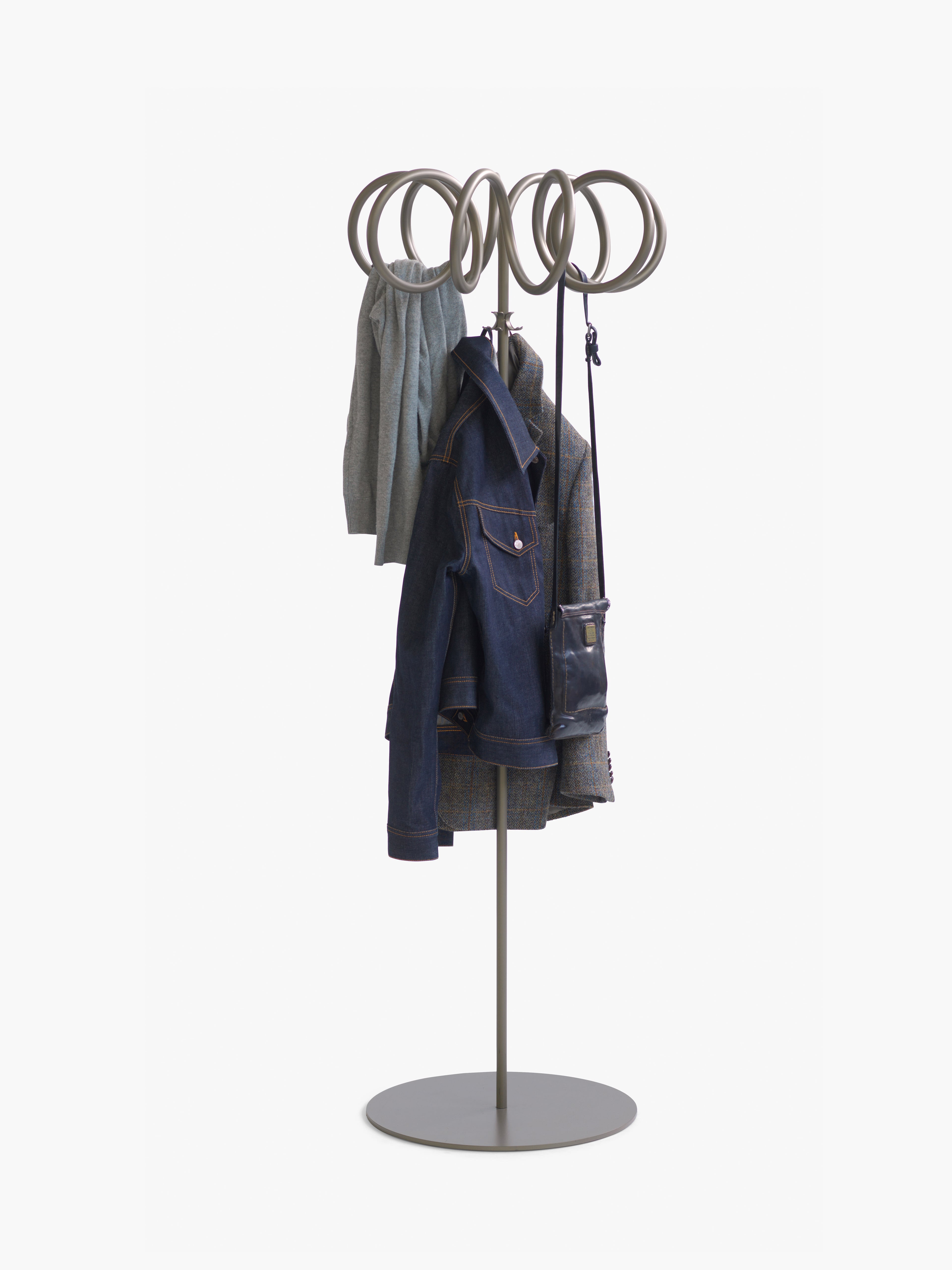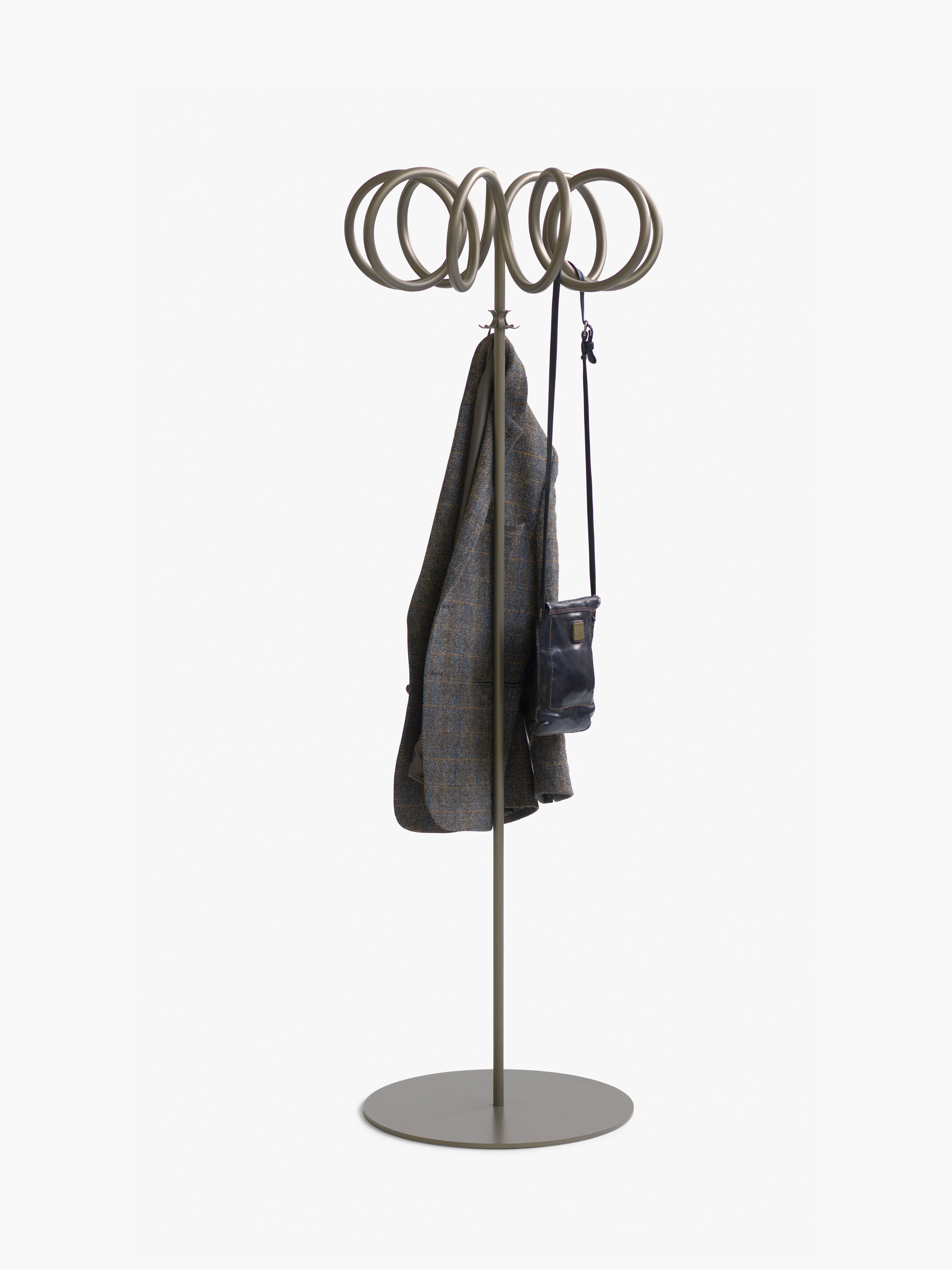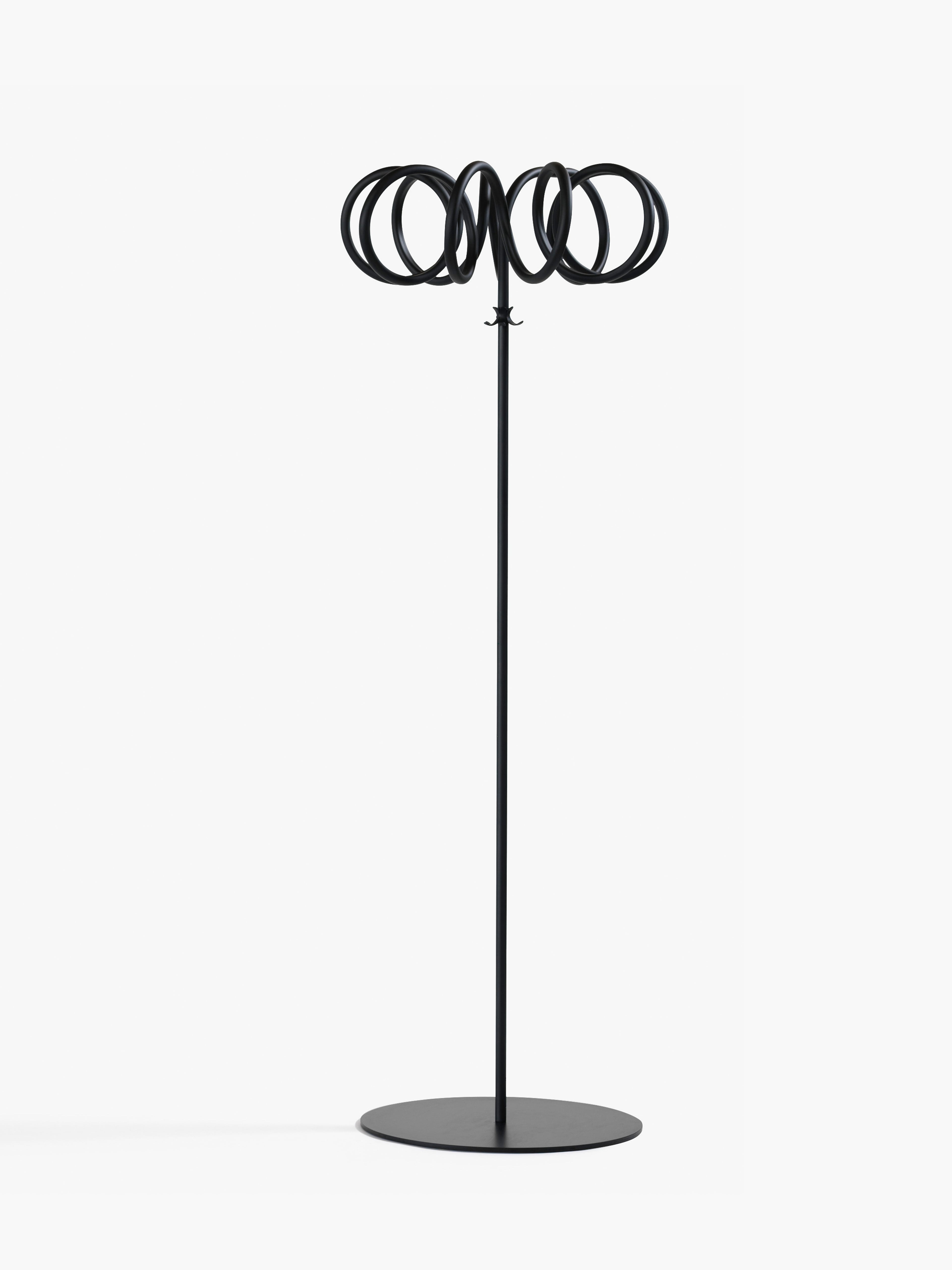A coat stand is not merely a hanger, but rather it is a sculpture that you can hang clothes or umbrellas on. It must look interesting both with and without anything hanging on it. The beauty of Visp lies in the simple line that becomes an intriguing corkscrew spiral, creating a sculpture that will brighten up any room without taking over completely.
