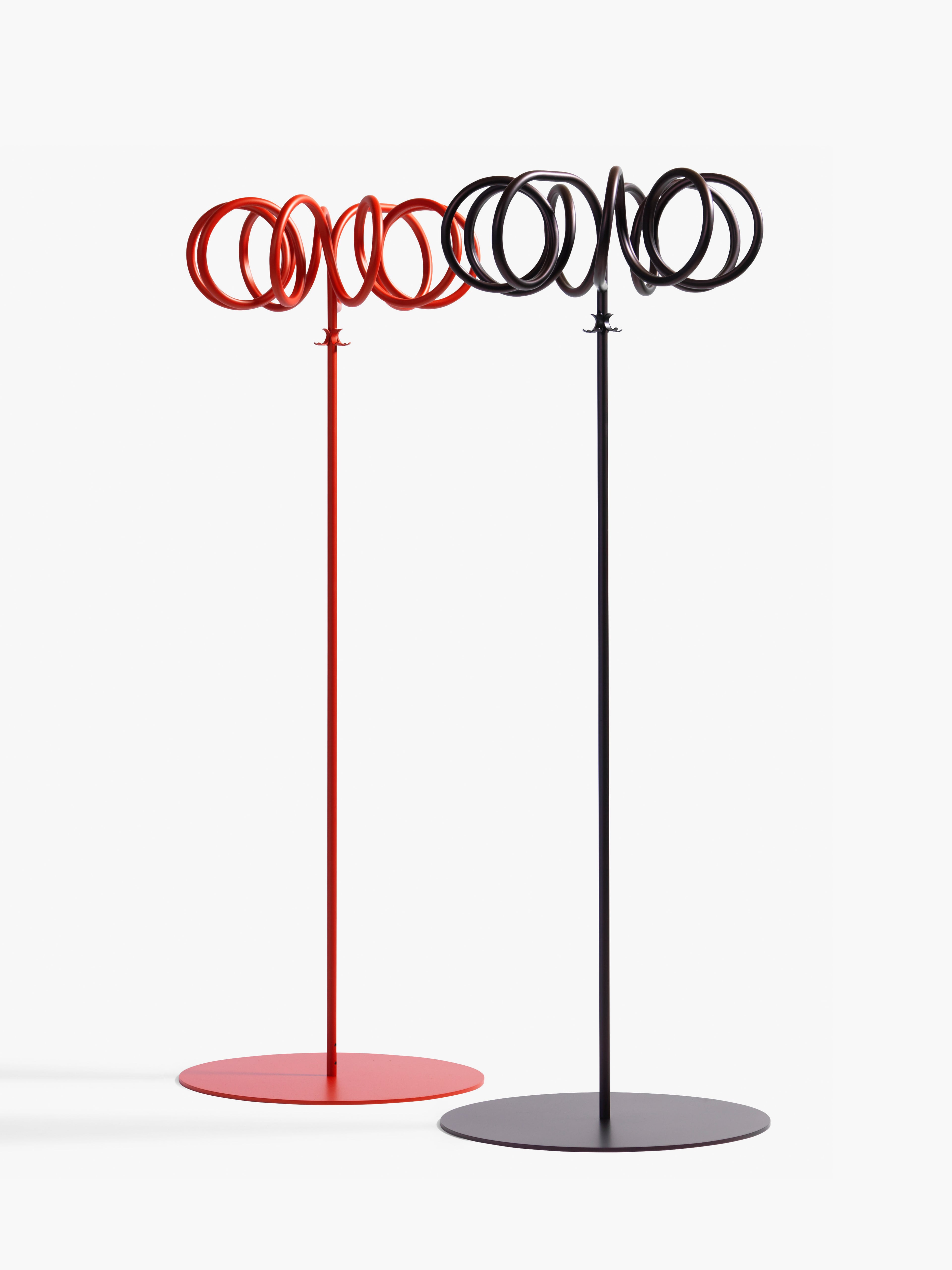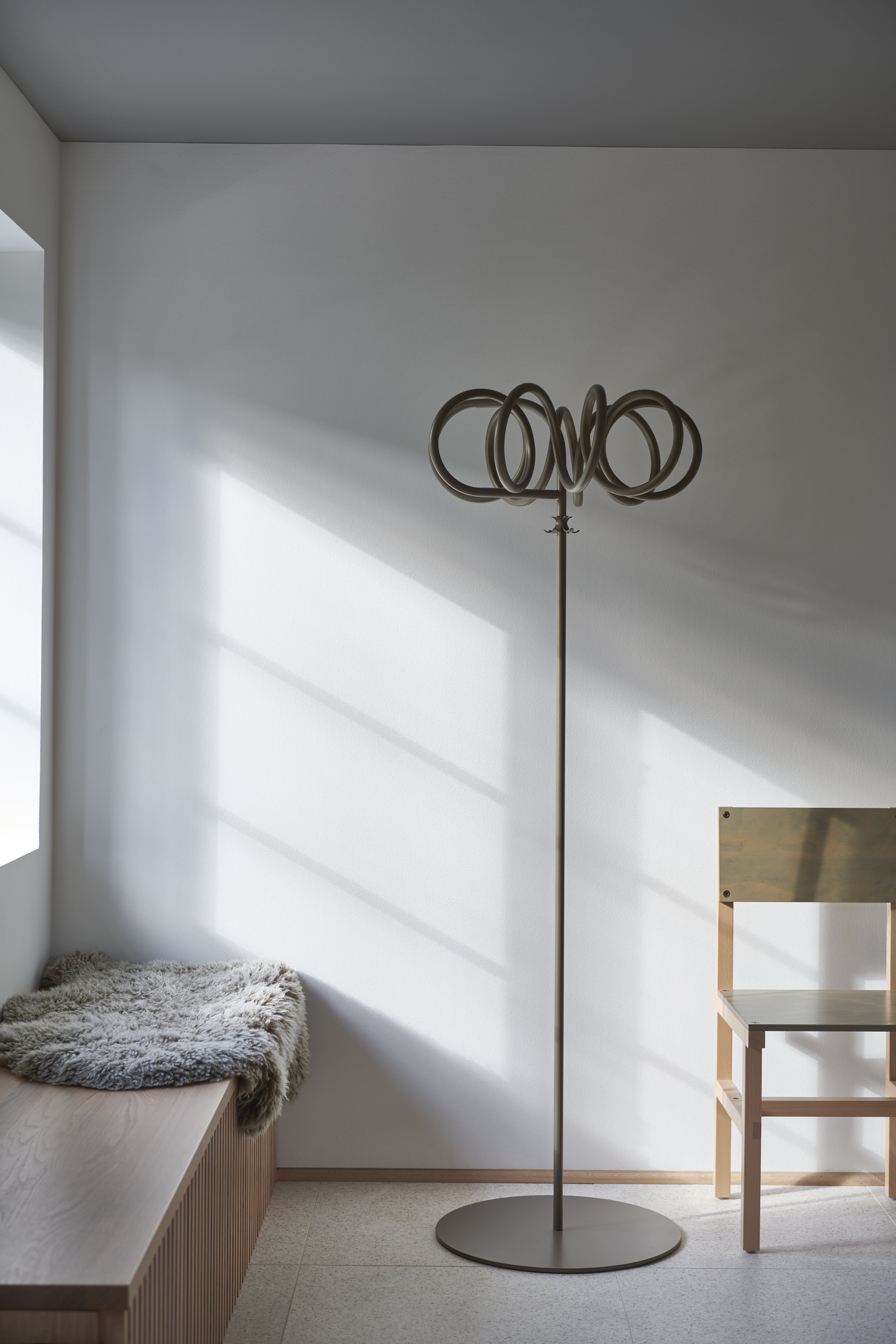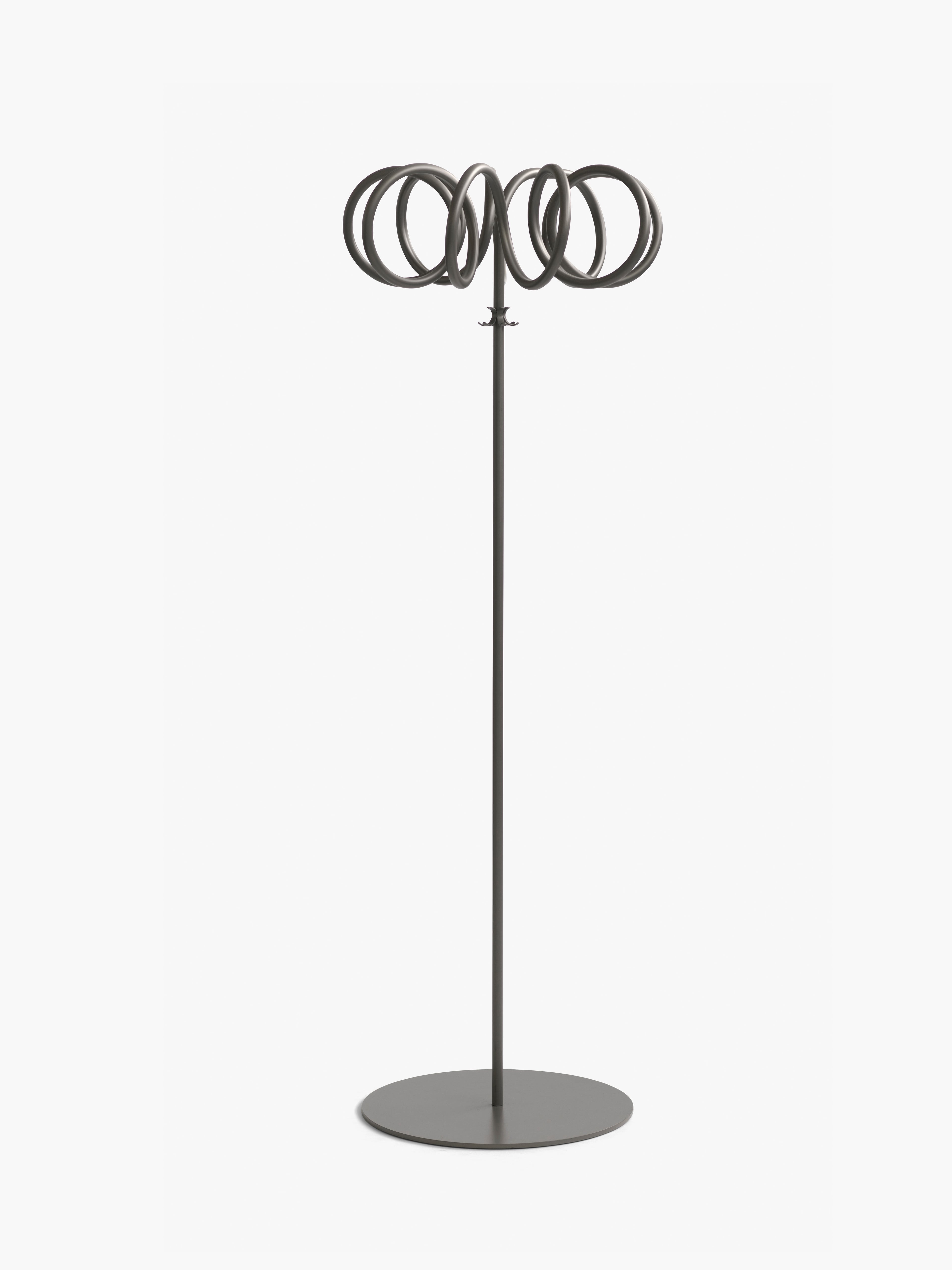A coat stand is not merely a hanger, but rather it is a sculpture that you can hang clothes or umbrellas on. It must look interesting both with and without anything hanging on it. The beauty of Visp lies in the simple line that becomes an intriguing corkscrew spiral, creating a sculpture that will brighten up any room without taking over completely.